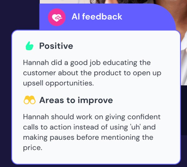 On some platforms, you can even upload your company’s sales standards so that the feedback is in line with your company’s sales methodology and skill development goals.