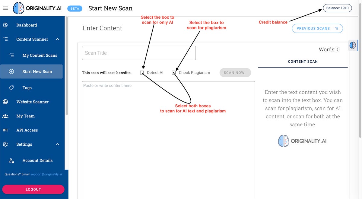 To appeal to the content creator crowd, the tool is straightforward to use, and it allows you to scan for AI content in a few simple steps: